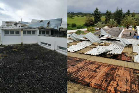 Telhado do complexo das piscinas de Elvas danificado pelo vento da última madrugada 0
