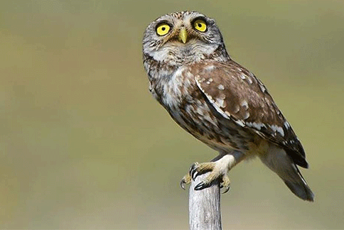 Uma ave de rapina Mocho-galego, Athene noctua) que foi encontrada debilitada no...