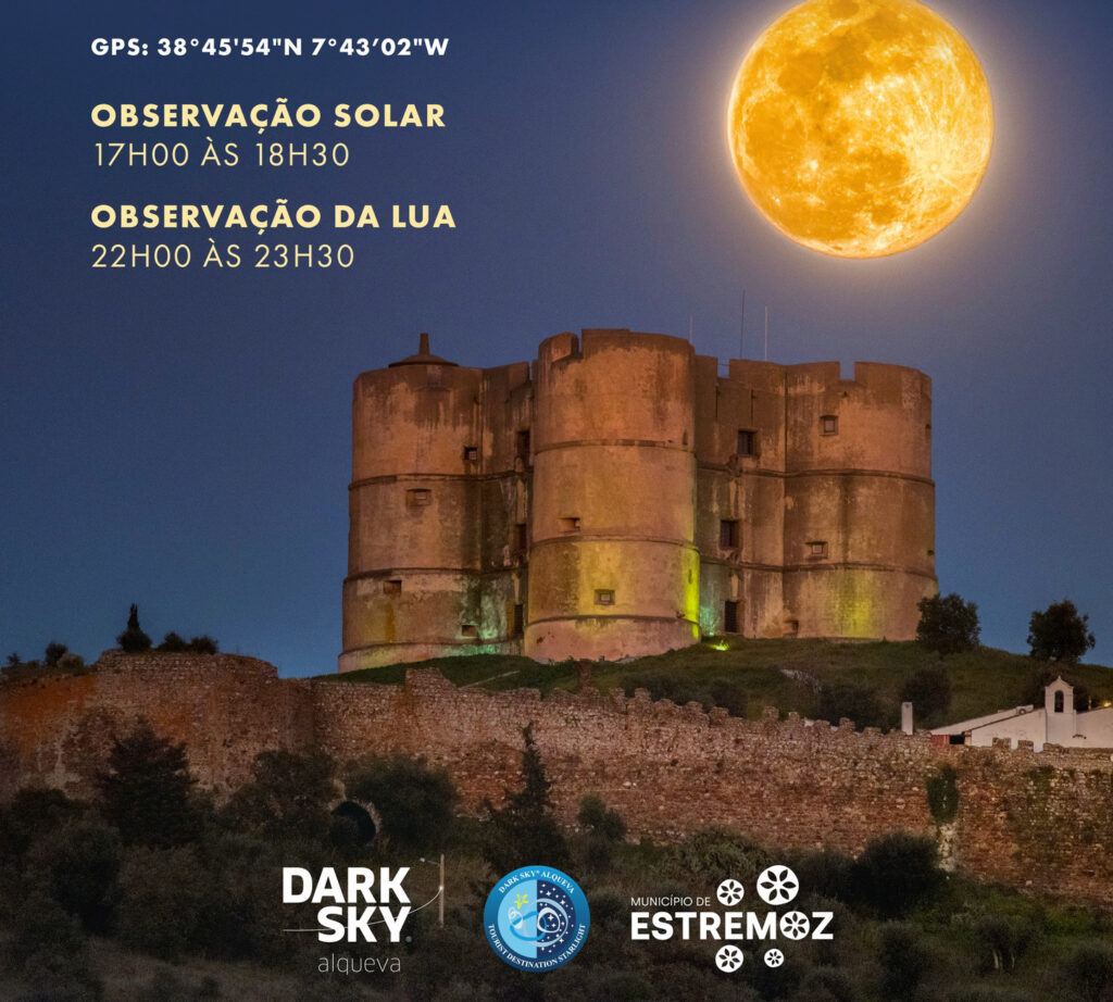 Estremoz é o mais recente concelho a integrar o Dark Sky Alqueva. Nos dias 15 e 16 de agosto, na rua das Cabanas, em Évora Monte, estão agendadas duas iniciativas, observação Solar das 17 às 18:30 horas e observação da Lua das 22 às 23:30 horas.
