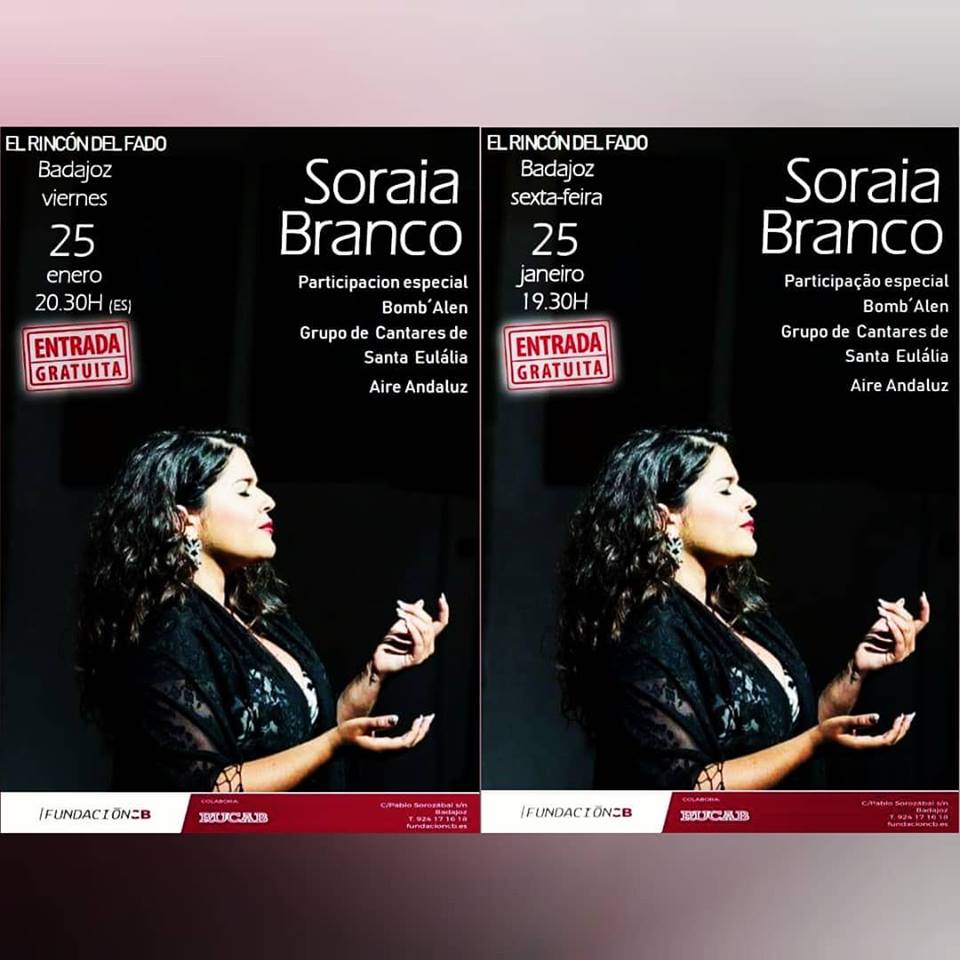 No designado “El Rincón del Fado”, Soraia Branco faz-se acompanhar pelas participações especiais dos Bom´Alen; Grupo de Cantares de Santa Eulália e Aire Andaluz.