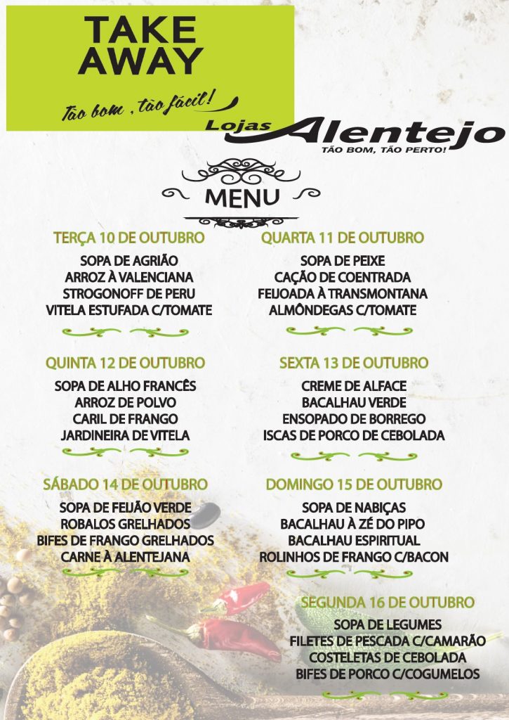 Lojas Alentejo: Menu Take Away (10 a 16 outubro)