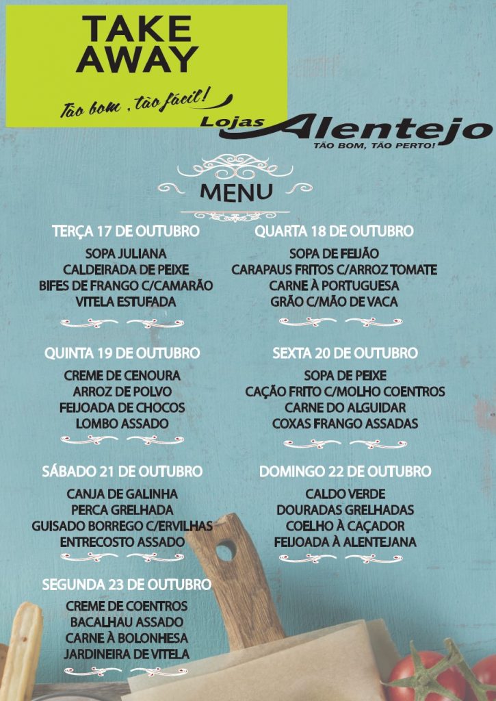 Lojas Alentejo: Take Away (Menu de 17 a 23 outubro)