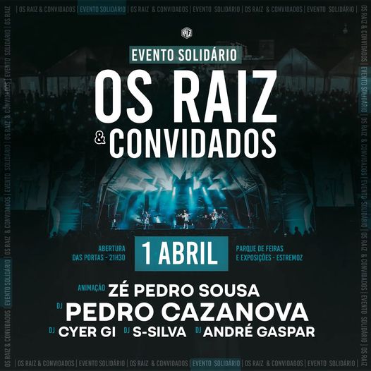 A banda OS RAIZ irá promover um Evento Solidário, no sábado, dia 1 de abril, no Parque de Feiras e Exposições de Estremoz.