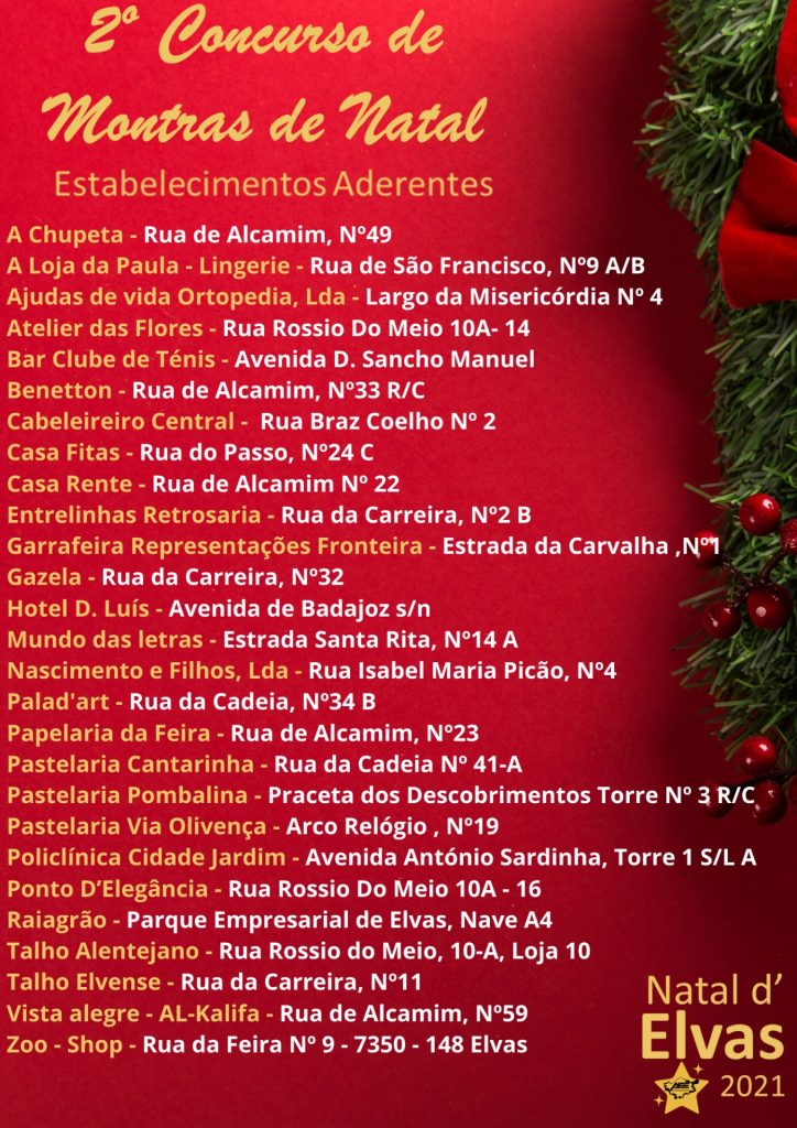 A Associação Empresarial de Elvas promove o 2º Concurso de Montras “Natal d’Elvas”, em 27 estabelecimentos.