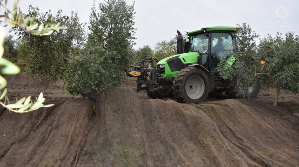 A colheita decorre naquela herdade, através da mecanização por vibradores e varejadores. Â