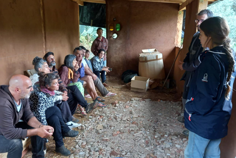 Neste workshop, os participantes aprendem a construir tetos verdes, mobiliário e piso de terra.