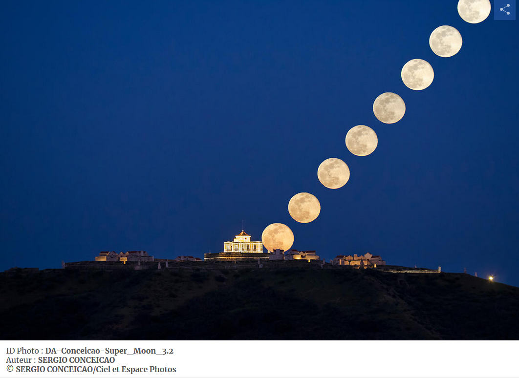 Uma das imagens de Elvas pode ser vista a galáxia na Ajuda, noutra fotografia surge o imponente Forte da Graça e a super lua de 21 de Março de 2019.
